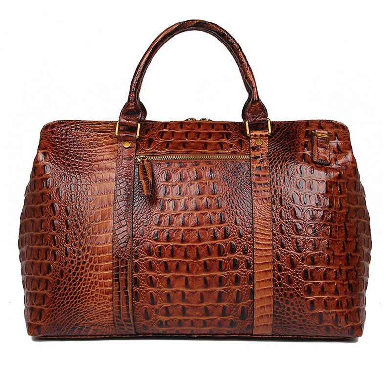 Fashion Doctors Bag Leather Travel Duffle Bag Unisex Alligator Pattern