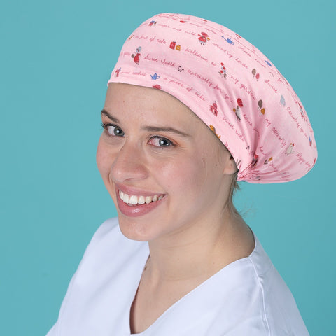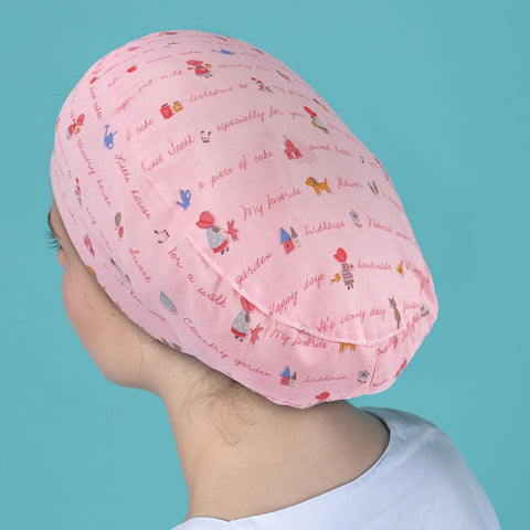 Long Hair Surgical Cap with Elastic Band - Pink Letter
