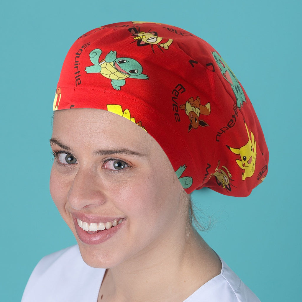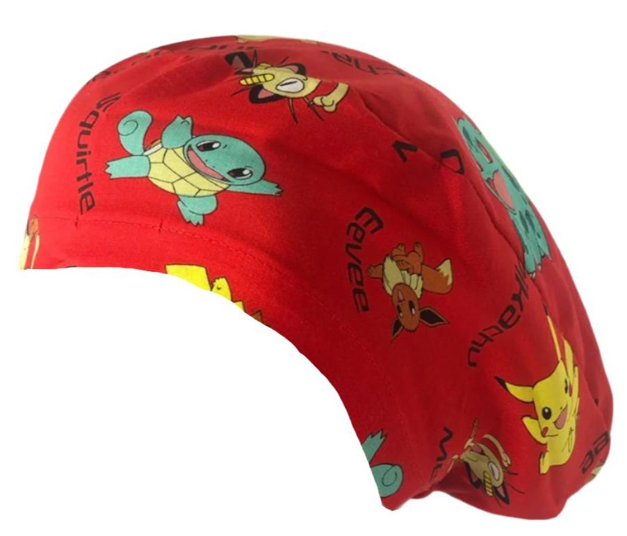 This surgical cap is specifically designed for individuals with long hair, featuring an elastic band at the back for a comfortable fit. The coloured pokemon in red design add a touch of style to this functional product.