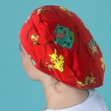 Long Hair Surgical Cap with Elastic Band - Red Pokemon