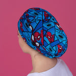 Long Hair Surgical Cap with with Buttons and Elastic Band - Blue Spiderman