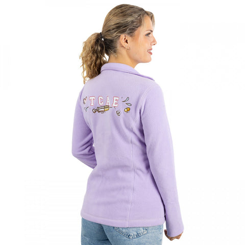 • Color: This fleece jacket showcases a delightful Sweet Lavender design, complementing the wearer's individuality with a touch of modern femininity. Ideal for those looking to exude elegance through their personal style.