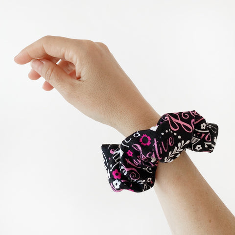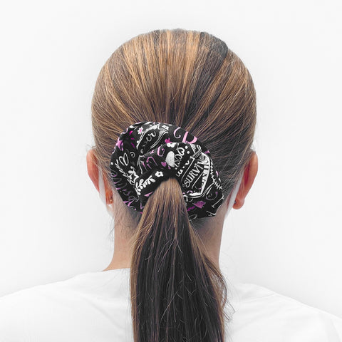 Elevate your hairstyle with our Scrunchie. This premium fabric hair band boasts 100% cotton, soft elastic, and a stunning Girls Fight design.