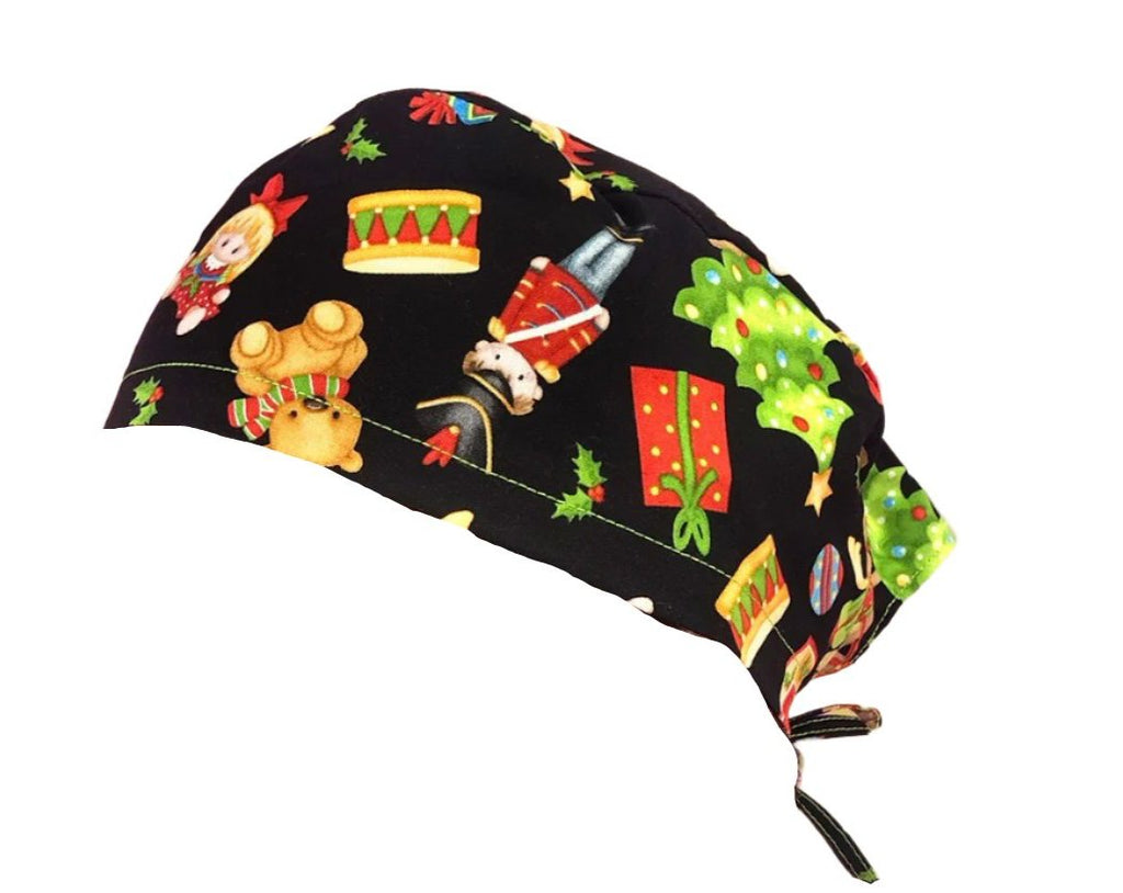 This surgical cap features adjustable laces and printed with Christmas stories, perfect for those with shorter hair. The back ribbons add an extra touch of style and function.