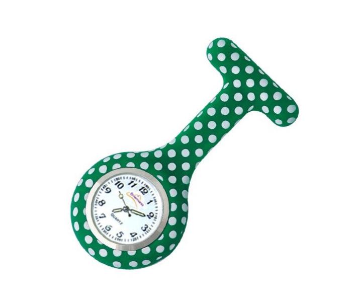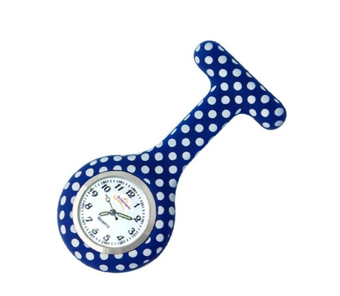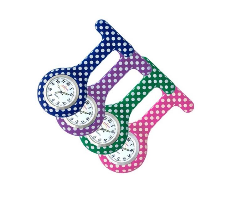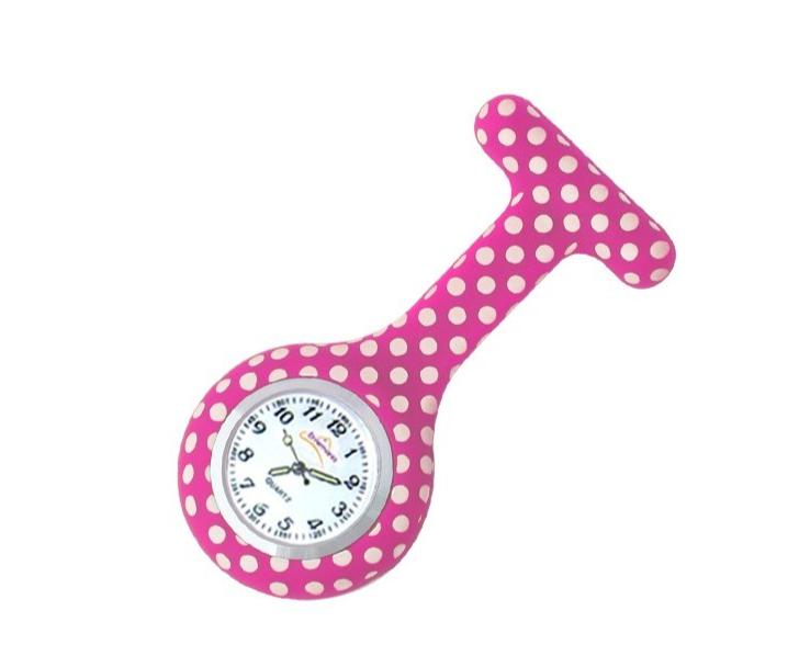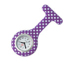 This Silicone Nurse Fob Watch is powered by Quartz Machinery and comes with a Brooch for easy attachment. Its Dotty print design in different colors and glow-in-the-dark feature make it a stylish choice. The fob watch's interchangeable cover adds versatility and functionality.