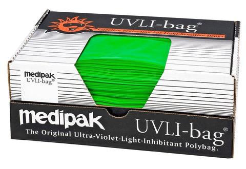 For 1-liter IV bags (1000 ml). Green UVLI™ covers provide a convenient, cost-effective, and disposable solution for protecting light-sensitive medications during transportation and administration. The semi-transparency of our Green UVLI™ makes it easy to read labels and levels underneath without lifting the cover. Our covers and bags exceed the United States Pharmacopoeia Standard blocking over 90% of harmful UV light between 290nm and 450nm, so you can protect with confidence. Regular UVLI™ covers are fully sealed on three sides.