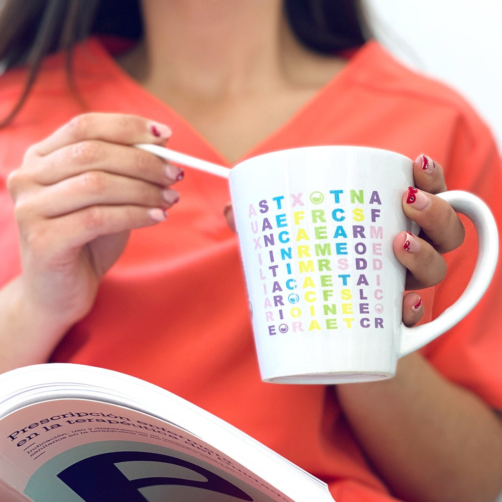 Enhance your morning with our unique cup specifically designed for medical professionals. Find all the hidden words and see if you can spot your own job title! This cup is perfect for boosting your energy before tackling long shifts, and it even comes with a spoon.