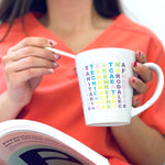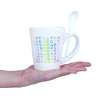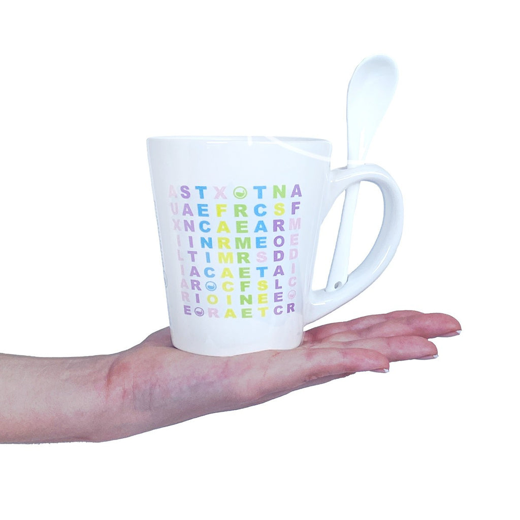 The Word Search Cup with Spoon in White boasts a stunning image, crafted by industry experts to elevate your mornings with positive energy.