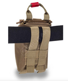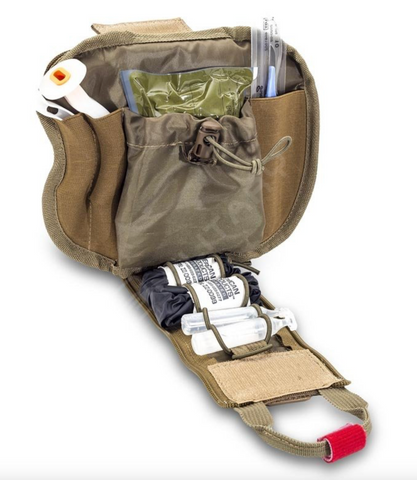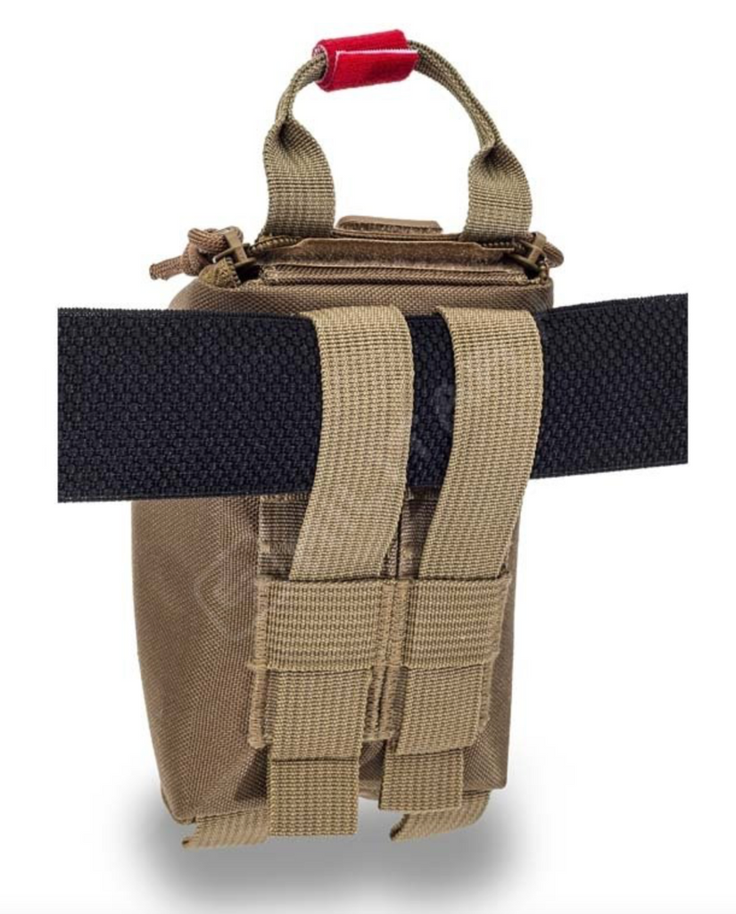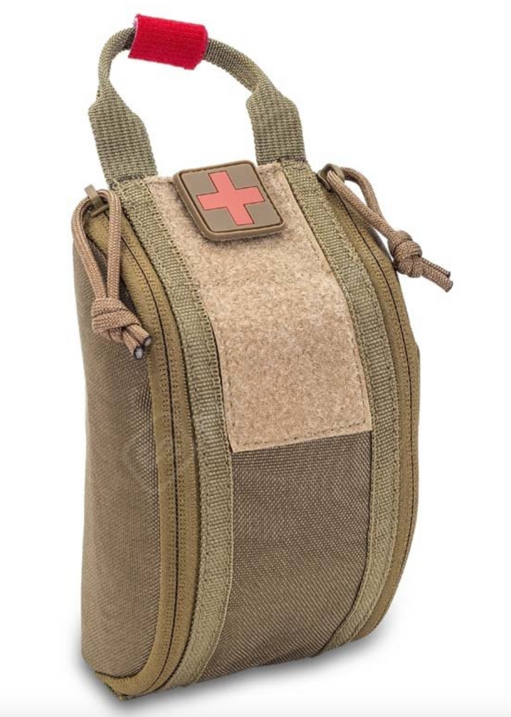 Compact & Individual first aid kit ideal to fasten it to the belt. Space for the basic care. Its MOLLE panel allows the fastening of it to other bags or vest and its quick opening systems allows the complete opening of the kit in just seconds.