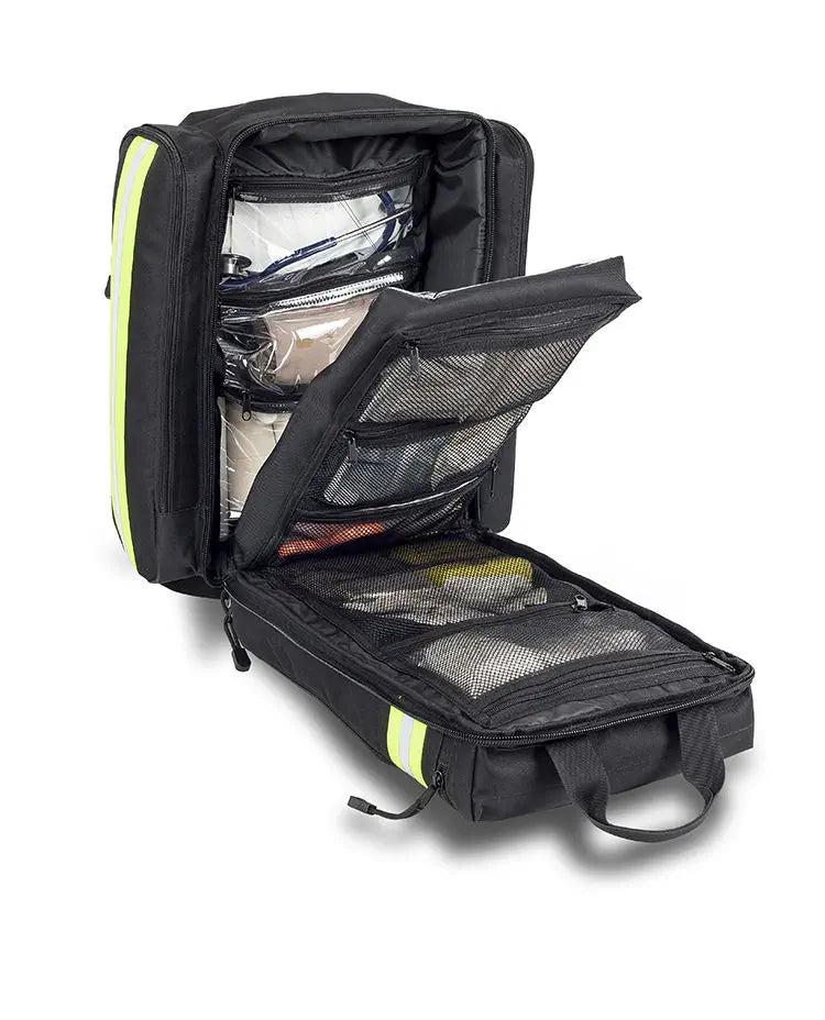 This comfortable and lightweight backpack has been purpose built for the needs of emergency crew providing Basic Life Support (BLS) in the field. Packed with intelligent design and built to last, with high quality materials and components, this hard-wearing and versatile pack is ideal for organising and safely transporting a range of first aid instruments and materials. The full length zip and fold-out clamshell design gives the user fast and easy access to all internal compartments, while providing a clean, compartmentalised work space, perfect when responding to outdoor emergencies.