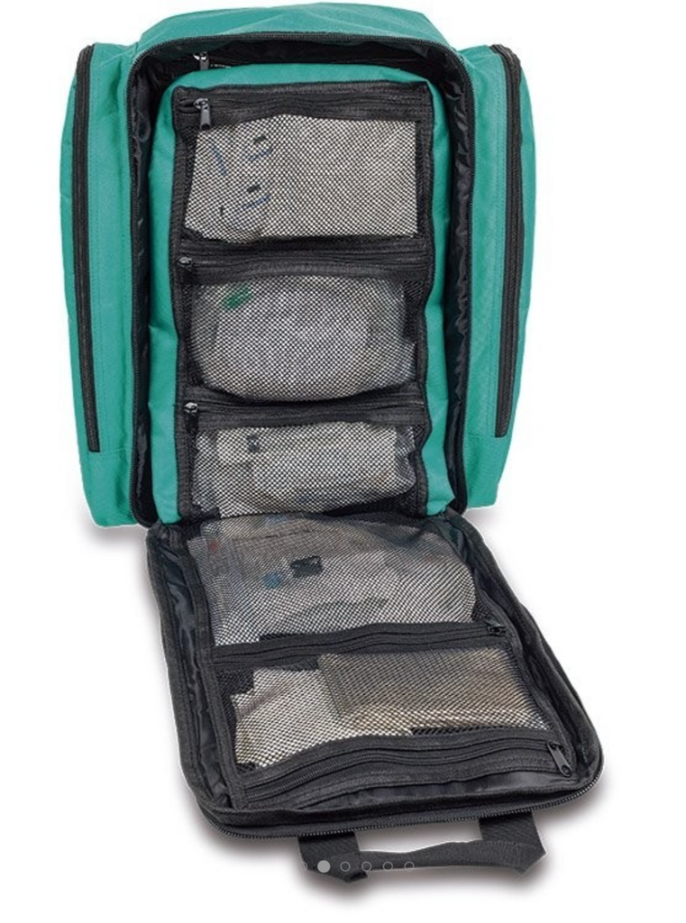 Clear, PVC fronted, zipped internal pockets make for excellent clear storage areas, and allow for the contents to be viewed even when closed. Mesh fronted pockets also provide easy access, breathable storage. Two full length external side compartments further extend the already ample capacity, and a wide front pockets contains sufficient space to store a defibrillator.