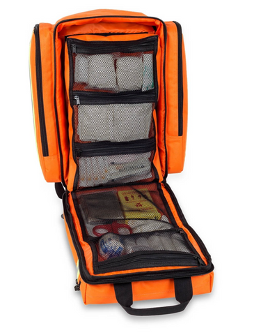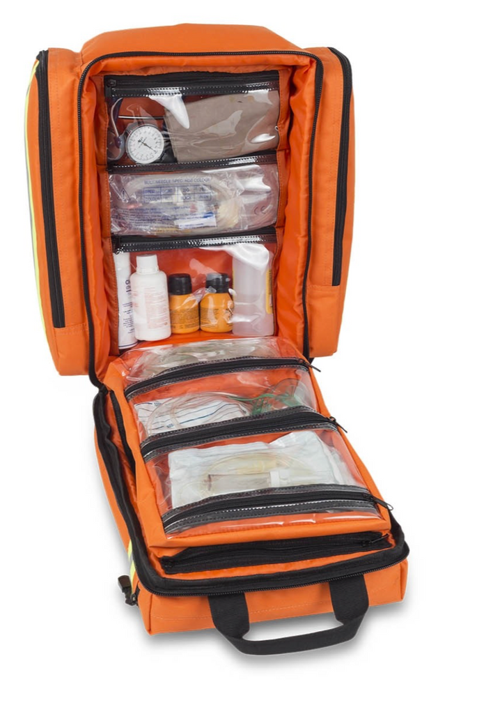 This comfortable and lightweight backpack has been propose built for the needs of emergency crew providing Basic Life Support (BLS) in the field. Packed with intelligent design and built to last, with high quality materials and components, this hard-wearing and versatile pack is ideal for organising and safely transporting a range of first aid instruments and materials. The full length zip and fold-out clamshell design gives the user fast and easy access to all internal compartments, while providing a clean, compartmentalised work space, perfect when responding to outdoor emergencies.