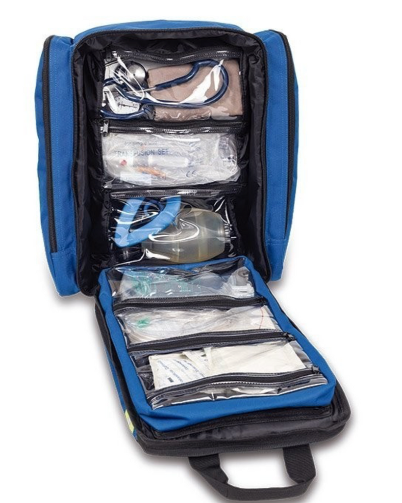 This comfortable and lightweight backpack has been propose built for the needs of emergency crew providing Basic Life Support (BLS) in the field. Packed with intelligent design and built to last, with high quality materials and components, this hard-wearing and versatile pack is ideal for organising and safely transporting a range of first aid instruments and materials. The full length zip and fold-out clamshell design gives the user fast and easy access to all internal compartments, while providing a clean, compartmentalised work space, perfect when responding to outdoor emergencies.
