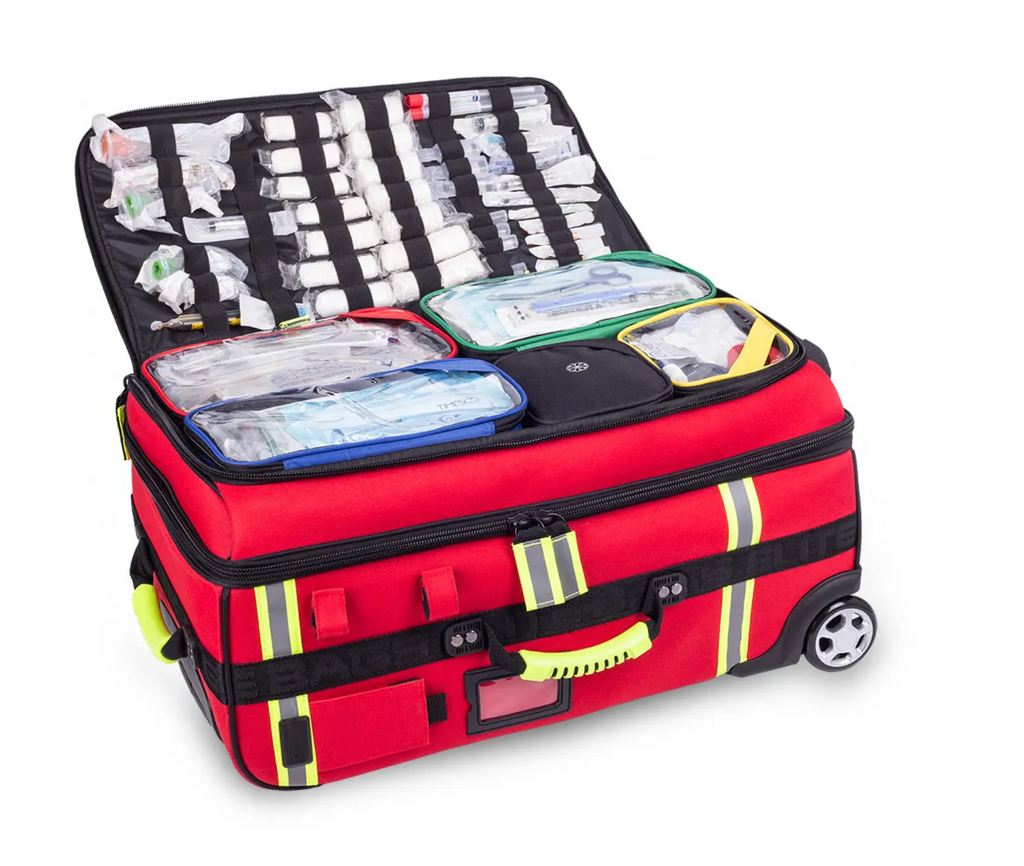 This bag has a maximum recommended load weight of 25kg; the built-in wheels and telescopic arm will allow the transport of your emergency equipment with minimal effort and greatly reduce manual handling issues.