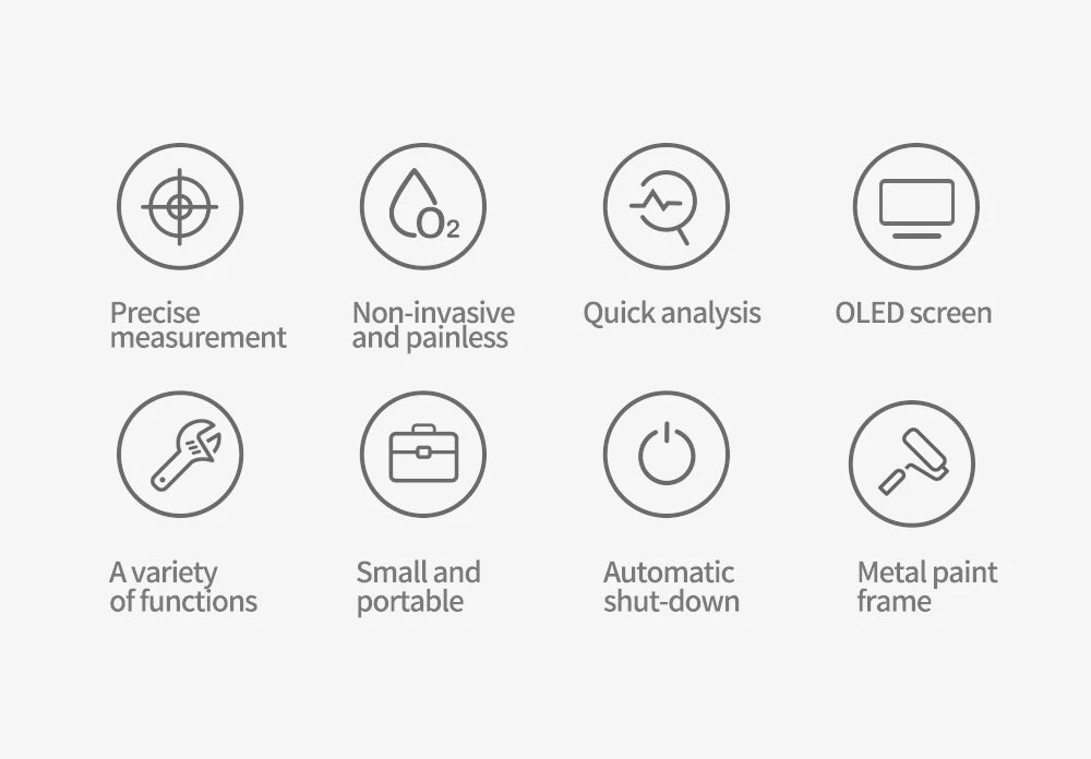 The JZ-130R (OLED) offers a variety of functions for precise and non-invasive measurement of four human indices: SPO2, PR, PI, and RR. With its powerful chip and advanced algorithms, this medical grade oximeter provides accurate data on blood oxygen saturation, pulse, blood perfusion index, respiratory rate, and more. Its small and portable design, along with its fast and automatic shutdown, make it a convenient and reliable tool for monitoring vital signs.