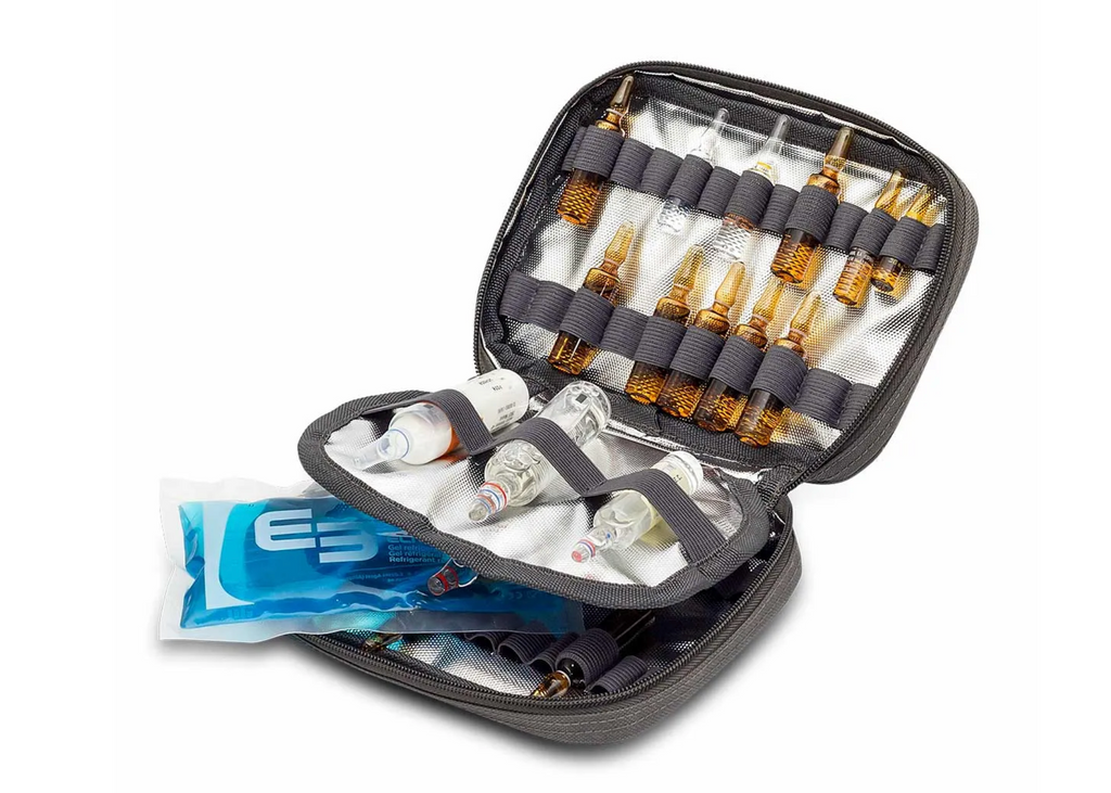 Robust, light and practical, this light medical holdall has been carefully designed to provide sufficient space for all the essentials health professionals would need during routine home visits. Includes a large zipped external pocket, two internal mesh fronted pockets, a main compartment with padded removable dividers and an isothermal, gel-cooled, ampoule pouch.