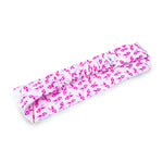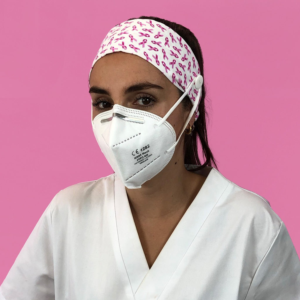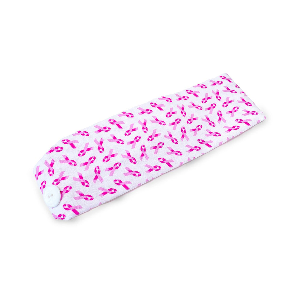 Headband Mask Holder with Buttons 100% Cotton Pink Bow - Breast Cancer