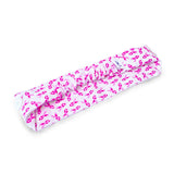 Elevate your hair game with our Headband Mask Holder featuring buttons and a Pink Bows - Breast Cancer design. Made from 100% cotton, it's soft, stretchy, and adorned with a joyful print.