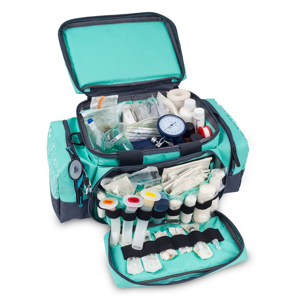 This aqua-colored Medical Emergency Bag from the Sweet Collection is a lightweight, versatile solution for home care needs. Designed with medical professionals in mind, it features a spacious interior and convenient light for easy access in emergency situations.