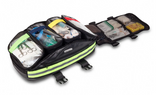 The Emergency’s Trapezoidal backpack’s clever design allows for the display and transport of 4 clear PVC fronted, colour coded pouches, developed to store medical instruments and materials for respiratory, circulatory, surgical and paediatric care. The front cover features full length zips that open to expose these pouches and number of mesh pockets. This system results in excellent visibility of the packs contents, even when individual pockets remain closed.