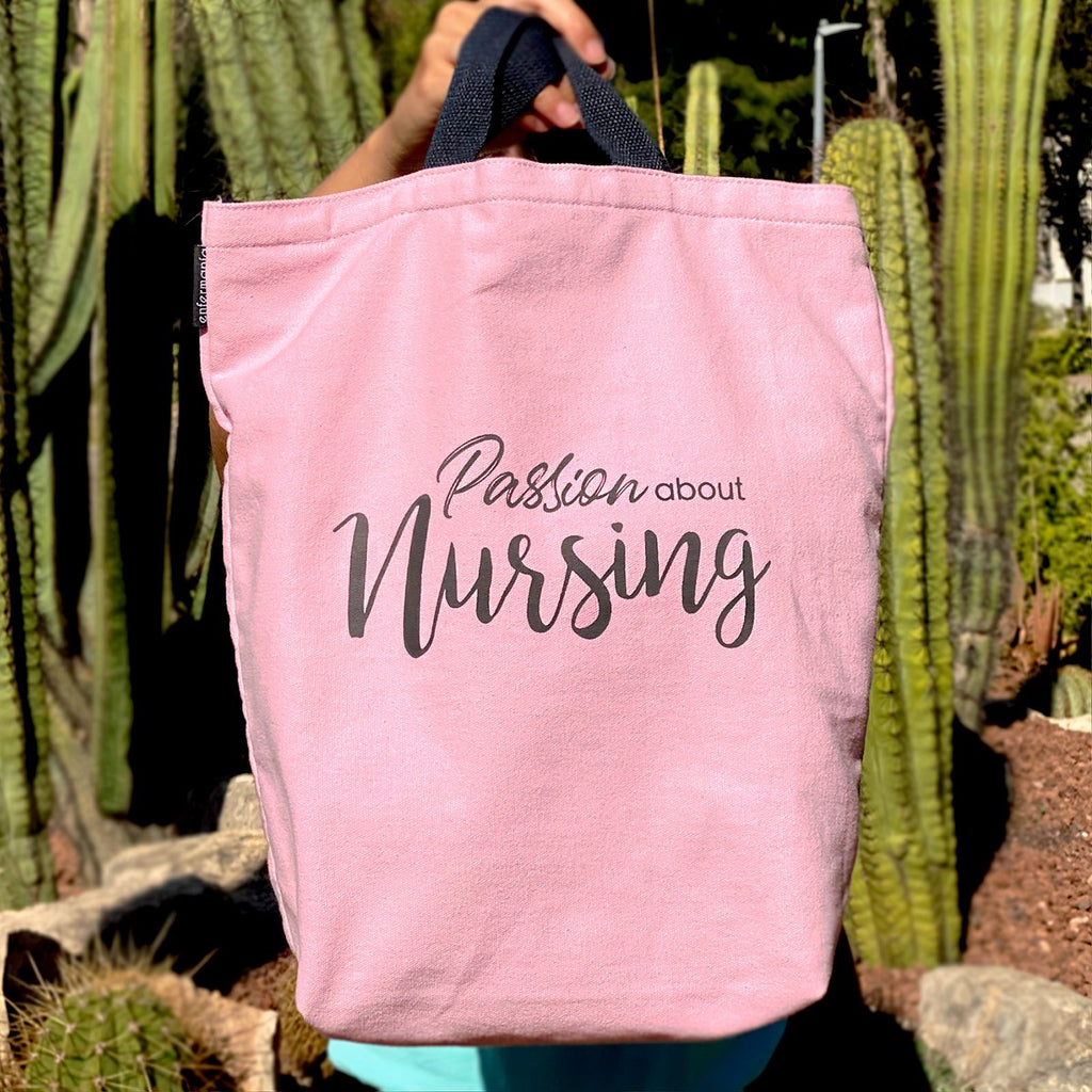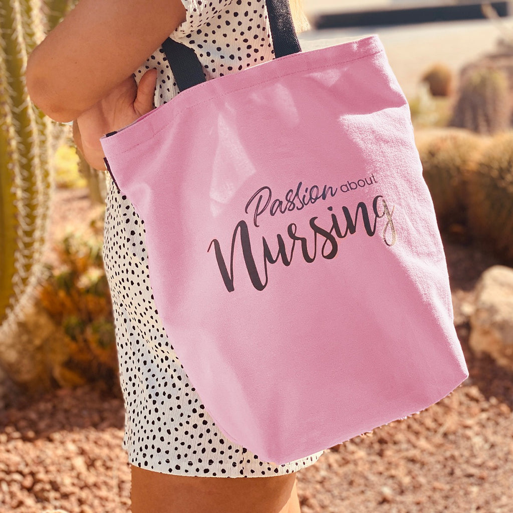Nurse Tote Bag Canvas Cotton Pink Rose