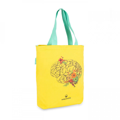 Nurse Tote Bag Canvas with Zippers Cotton Yellow Brain