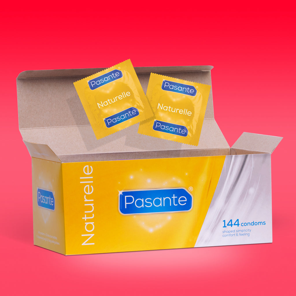 Pasante Naturelle Condoms have a slight taper for a natural feeling. Smooth, of natural colour and teat-ended.