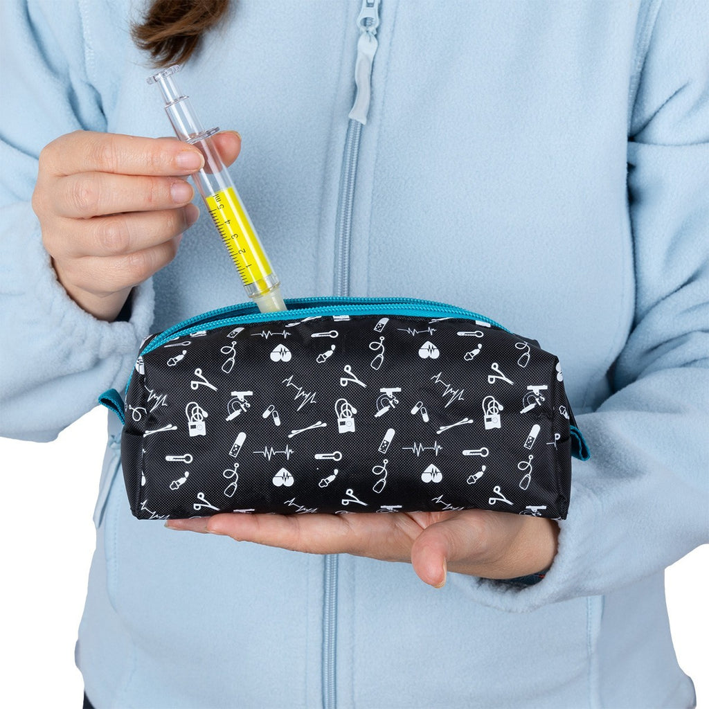 Stay organized while getting 'back to school' work with our Colorful pen and pencil case. This efficient case is perfect for nurses, doctors, medical students, and healthcare professionals. With room for pens, patient notes, ID cards, and even a thermometer, you can keep all your essentials in one stylish place. Don't let your serious work stop you from looking professional and stylish.
