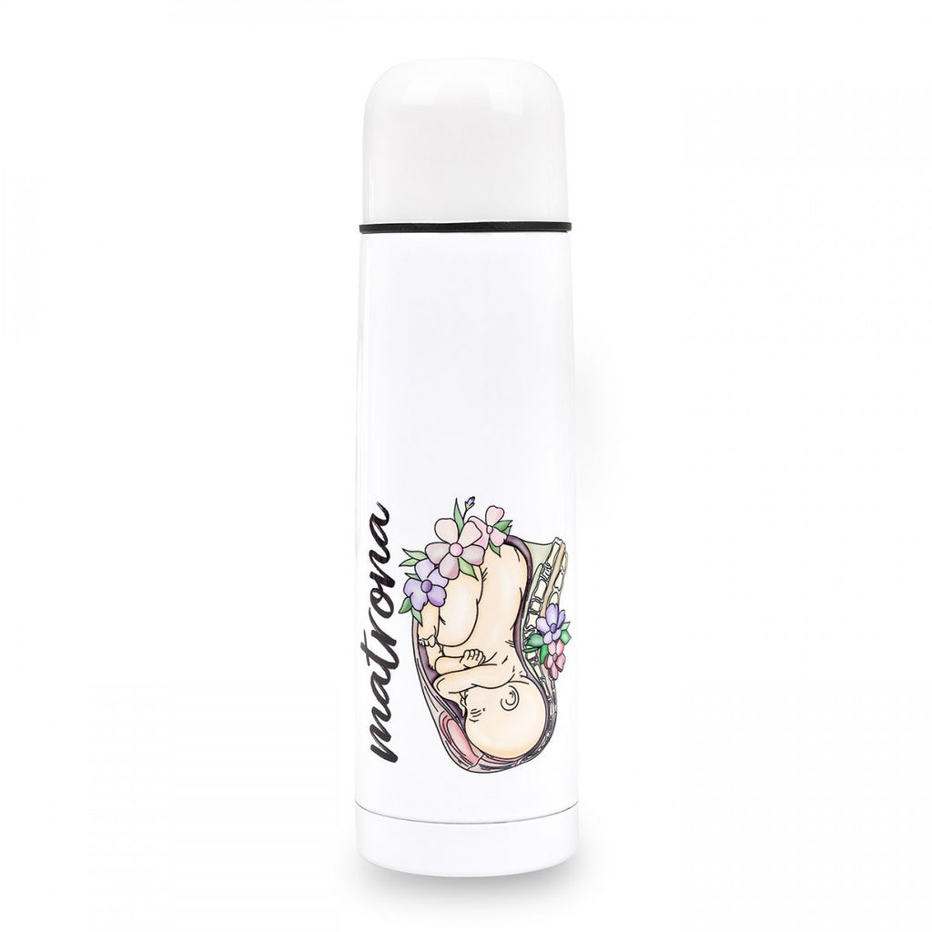 Introducing our Personalised Custom Name Classic Stainless Steel Thermo Bottle with Cap 500ml, featuring a charming Midwife Life - Matrona Baby Print design. This versatile and thermo bottle is ideal for any occasion, and can be customized with any name for a truly unique touch.