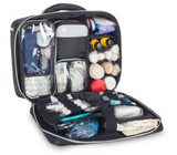 The main compartment contains two removable equipment pouches with transparent PVC windows, a removable isothermal ampoule holder and a general storage area, conveniently compartmentalised with detachable Velcro dividers. Additional large format flat pockets and arrays of elasticated straps provide a perfect means to secure bandages, swabs, syringes and other medical consumables.