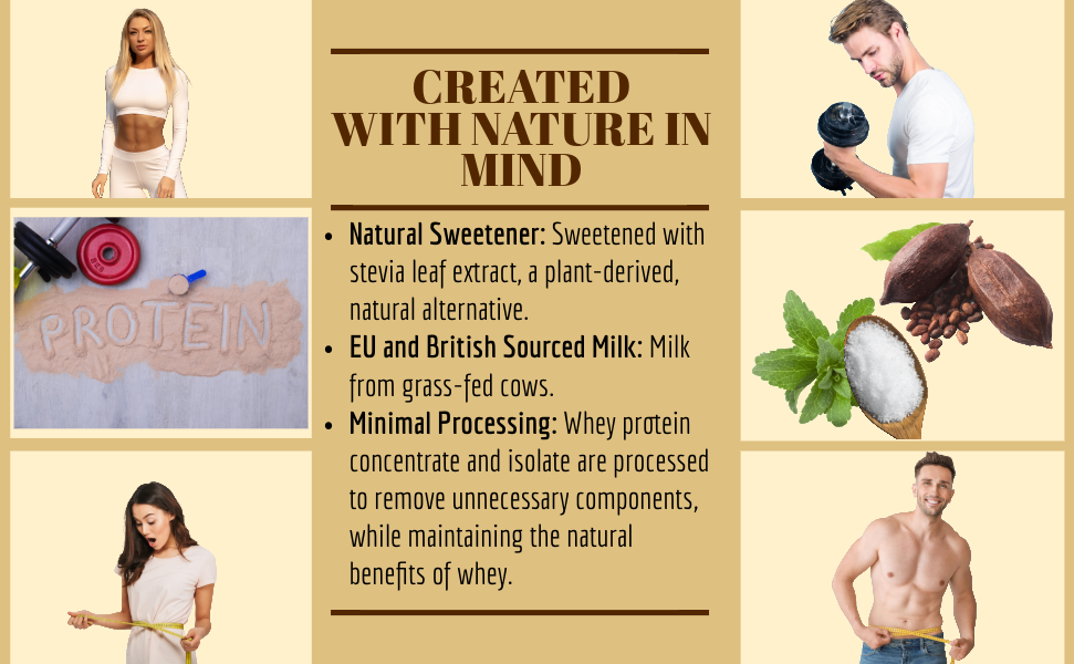 • Minimal Processing: Whey protein concentrate and isolate are processed to remove unnecessary components, while maintaining the natural benefits of whey.