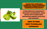• Our Super Diet Garcinia Cambogia capsules contain Garcinia cambogia, glucomannan derived from the elephant yam's roots (konjac), and chromium picolinate to support carbohydrate metabolism. With 90 capsules per bottle, this supplement lasts for over 1.5 months. Take 1 capsule 2-4 times a day for best results.