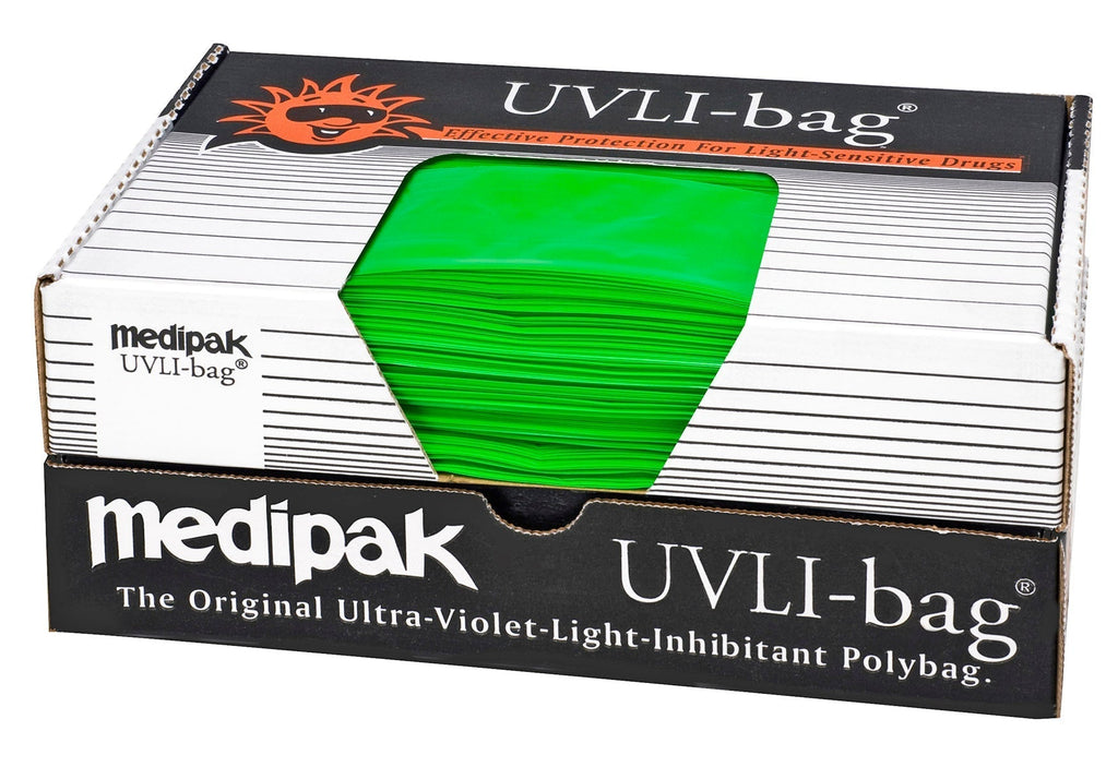 For 1-liter IV bags (1000 ml). Green UVLI™ covers provide a convenient, cost-effective, and disposable solution for protecting light-sensitive medications during transportation and administration. The semi-transparency of our Green UVLI™ makes it easy to read labels and levels underneath without lifting the cover. Our covers and bags exceed the United States Pharmacopoeia Standard blocking over 90% of harmful UV light between 290nm and 450nm, so you can protect with confidence. Slit-top UVLI™ covers are fully sealed on two sides with the top seal having a convenient unsealed portion for even easier hanging.