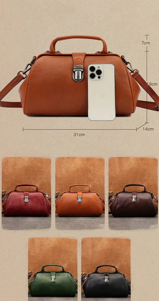 Vintage Genuine Leather Women Doctors Bag Crossbody Messenger Shoulder Bag