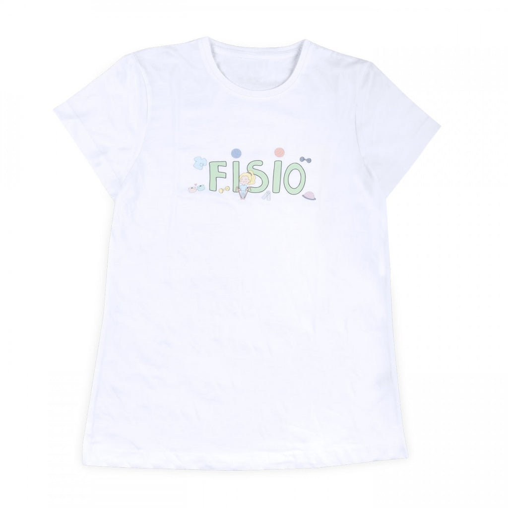Women's Fitted Medical T-Shirt Fisio Pastel Colors White 100% Cotton