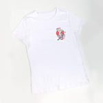 This 100% Cotton White Women's Fitted T-Shirt features a distinctive Rebelheart design that is sure to catch the eye.