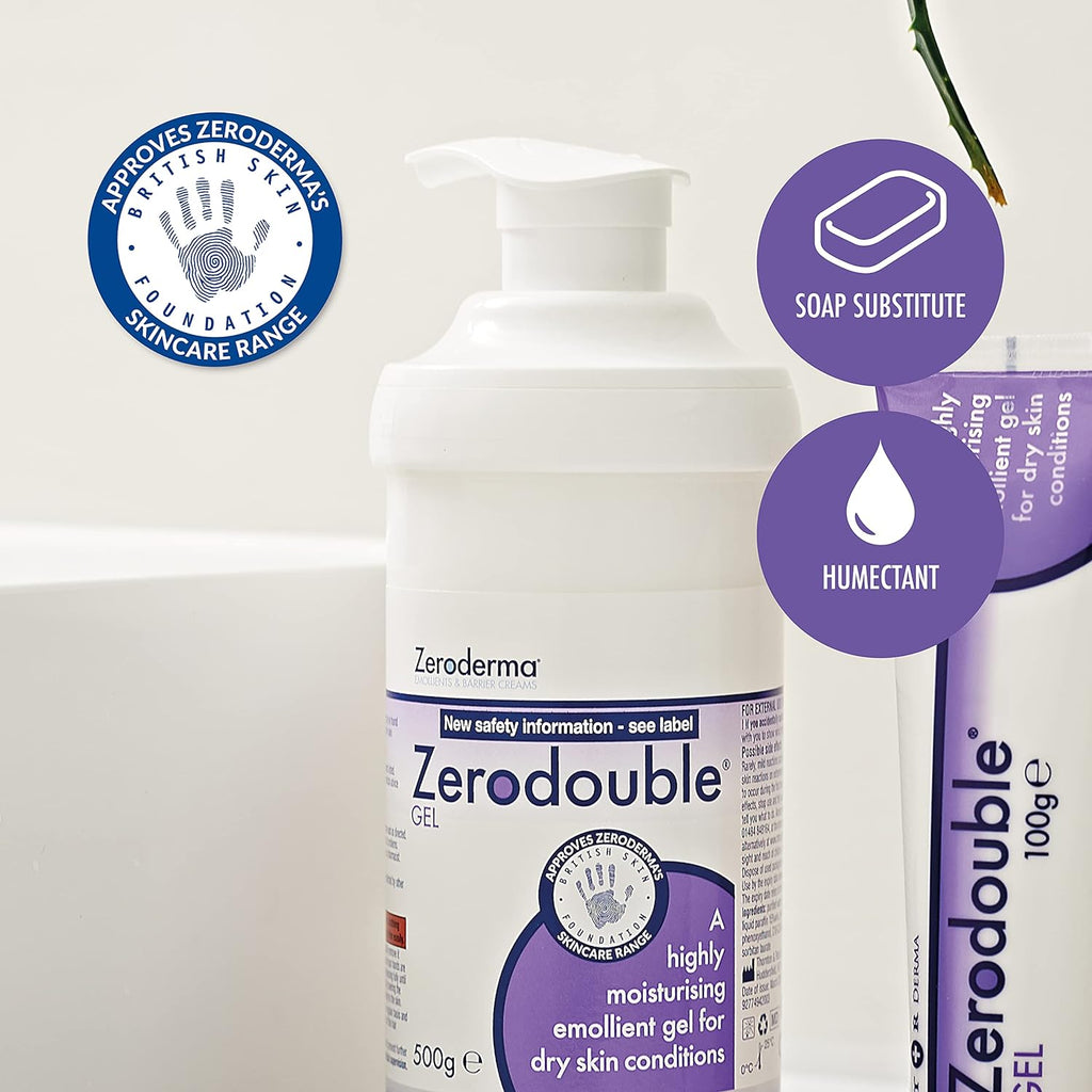 Uses: Adults, the elderly and children*: Apply the gel to the affected area on a regular basis and as often as required. Smooth gently into the skin following the direction of the hair growth. Alternatively apply as directed by your doctor or pharmacist. Zerodouble Gel may also be applied before washing or bathing in order to prevent further drying of the skin